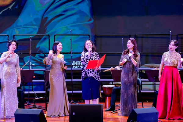 弦歌诉传奇,夙愿终如愿。混声合唱《传奇》用空灵和声,将惊鸿一瞥的邂逅编织成浪漫梦境;《岁月里的花》借悠扬韵律,把时光沉淀的温情酿成芬芳诗篇;《如愿》凭浩荡气势,将家国同构的情怀化作铿锵誓言。民族室内乐《敦煌》借琵琶、古筝等传统乐器之韵,再现大漠飞天的壮丽图景,穿越千年,带来一场沉浸式的东方美学体验。混声合唱《是你一直想着我》情意浓浓,各声部默契配合,以动人的情感唱出对奉献者的崇高敬意。意大利经典歌曲《登山缆车》以雄浑激昂的曲调与炽热奔放的歌词,描绘出如太阳般炽热的情感,让观众沉浸在跨越国界的音乐魅力之中。领唱与合唱《强军战歌》每一曲音调都激荡着铁血丹心,每一句歌词都迸发出强军信念,把军人保家卫国的壮志豪情展现得淋漓尽致,激昂旋律久久回荡,点燃全场观众的热血与豪情。 曲终意未尽,声落情更长。在观众经久不息的掌声中,合唱团接连献上三首返场曲目。《世界赠予我的》以温暖的歌声诉说着对生活的感恩与热爱;《就是哪吒》用充满力量感的节奏唱出年轻人不惧挑战、突破极限的勇气;当熟悉的旋律响起,全场共同唱响《歌唱祖国》,炽热的爱国情怀感染着每一个人。