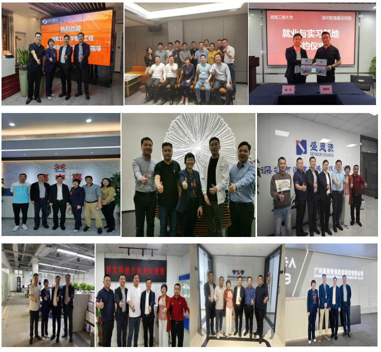 为加强校友联络,拓宽毕业生就业资源和渠道,切实推进毕业生高质量就业,健全校企协同育人联合机制,12月13日至15日,学院相关负责人赴广州、东莞、深圳等地走访陈勇、沈超、管国良、李福建、杨贵武、雷桥兵、倪祖旭等校友企业并开展访企拓岗活动,与广东喜中喜科技有限公司、深圳市源丰光彩科技有限公司、深圳市炽星电子科技有限公司、深圳市源建传感科技有限公司、深圳智慧建设控股有限公司等7家企业签订共建就业实习基地合作协议书。