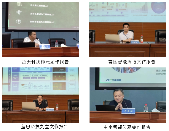 在召开培养方案研讨会之前,举办了学术报告会暨麓山大讲堂创新论坛之“文化和科技融合发展”分论坛,报告会包括信息类和智能制造类卓越工程人才培养讲座。周博文董事长、刘立文高级总监在图书馆英才报告厅,分别主讲了“人工智能技术应用与自主可控人才培养策略”和“浅谈制造企业数字化转型思路”的专题报告。钟元龙副总裁、吴葛铭总监在乐知楼F201报告厅,分别主讲了“技术开发与企业运营的逻辑关系及楚天智能制造运营系统架构”和“智能制造激光技术与应用”的专题报告。同时,在北校区追光楼报告厅和图书馆报告厅同步直播。1000余名师生通过线上线下形式聆听了报告。
