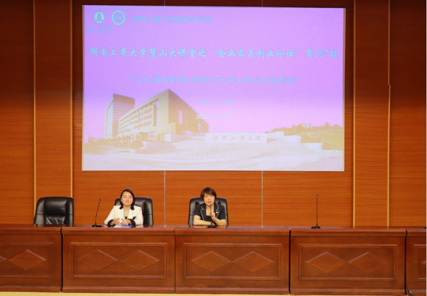 4月29日下午,湖南悦小企数字科技有限公司总经理冯宴应邀主讲麓山大讲堂之“企业家与创业”论坛第257期暨麓山智汇讲坛第39讲,讲座主题为“从校园到职场:新时代大学生职业发展规划”。讲座会场设在英才报告厅,智能工程与智能制造学院党委副书记易玉梅教授主持讲座,学院共计300多名师生到场聆听本场讲座。