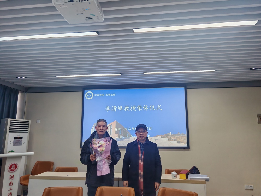 会议第二阶段举行了李清峰教授荣休仪式。周开军书记介绍了李教授的执教生涯与贡献。执行院长周鲜成教授代表学院向李清峰教授献上鲜花与荣休纪念牌,表达对其数十载耕耘的崇高敬意。与会教师纷纷发言,深情回忆与李教授共事的点滴,并送上真诚祝福。
