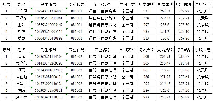 根据《智能工程与智能制造学院2023年硕士研究生复试录取工作方案》,经智能工程与智能制造学院研究生招生工作小组组织复试,现公示2023年信息与通信工程学术型硕士研究生调剂(第一轮)拟录取推荐名单,公示期为2023年4月12日-4月16日,公示期内如有异议,请向智能工程与智能制造学院研究生工作办公室反映。(联系电话:0731-88688197)