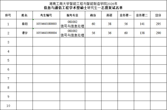 根据《湖南工商大学智能工程与智能制造学院2026年硕士研究生复试录取工作方案》,现将复试名单公布如下。